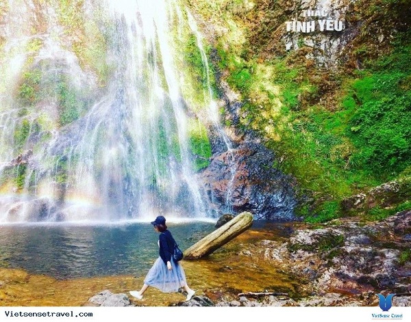 Thác Tình Yêu nằm ngay trên lối đi đến Cổng trời cách khu vực Thác Bạc khoảng 2km. Thác có độ cao 1.800m so với mực nước biển, nằm sâu trong khu vực của Vườn quốc gia Hoàng Liên Sơn.Vẻ đẹp hoang dã gần gũi của những bụi hoa đỗ quyên đỏ vàng rực rỡ đan xen với sắc xanh mượt của khóm trúc đung đưa trong làn gió đại ngàn.